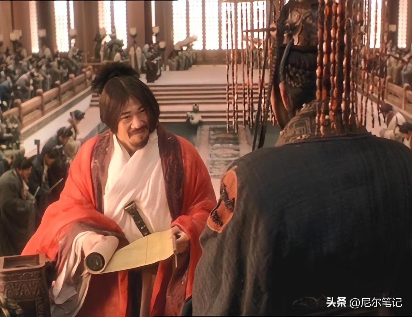 剧中,他一出场,身穿黄袍,眼神中饱含睿智与威严。