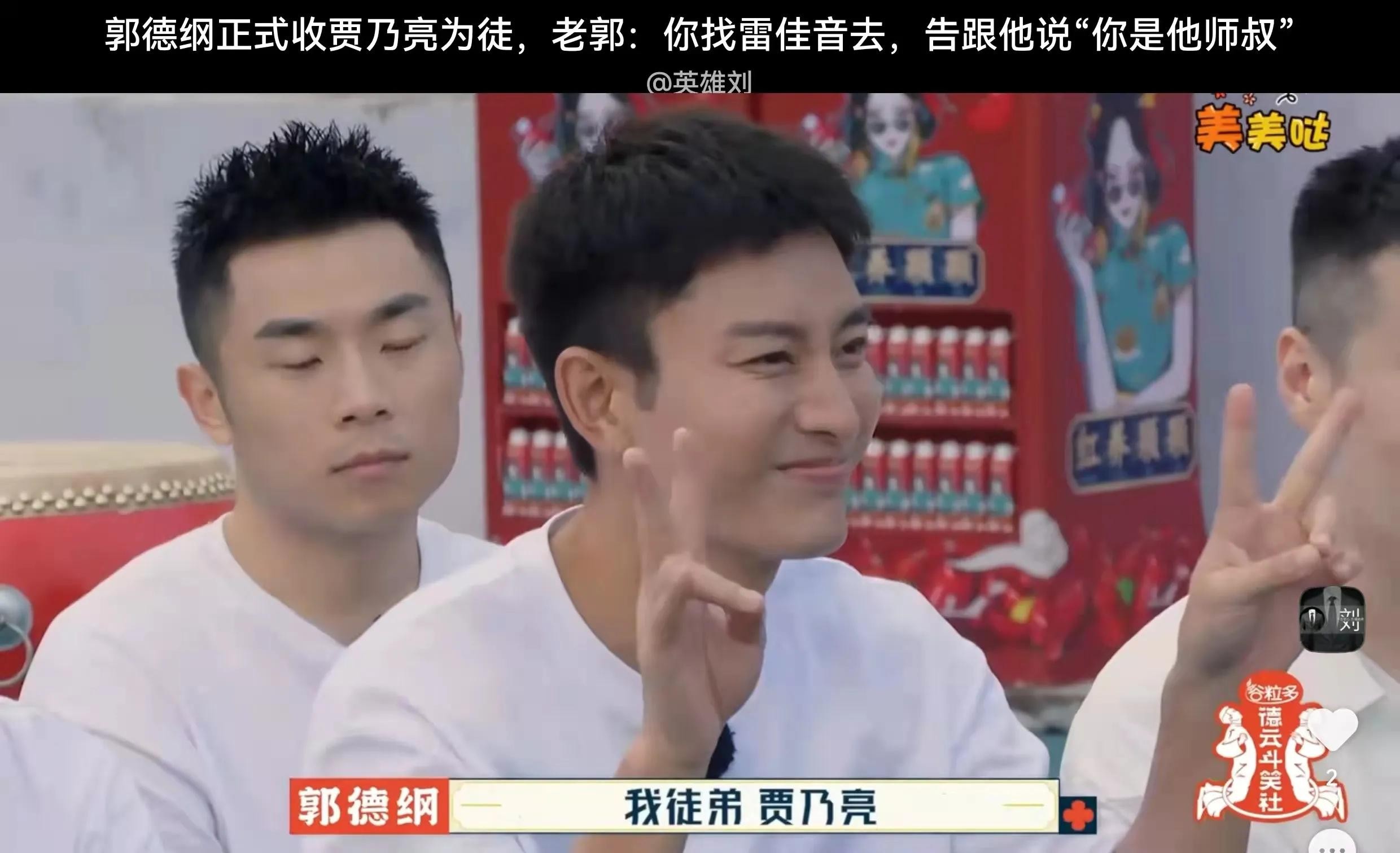 贾乃亮,在《德云斗笑社》上,贾乃亮作为飞行嘉宾,向郭老师提了拜师的意思,当场两人一拍即合。郭老师也马上把雷佳音这个师侄送给了贾乃亮。