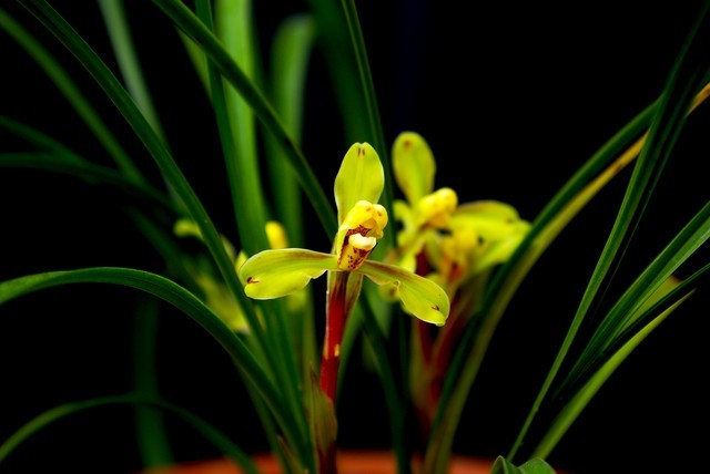 ps:在中国兰花当中,花朵上的舌头颜色单一,或黄、或绿、或红、或白、甚至全黑,没有其他颜色的杂色,如条纹、斑点和斑块的兰花被称为“素心兰花”,俗称“素心”或“素花”。