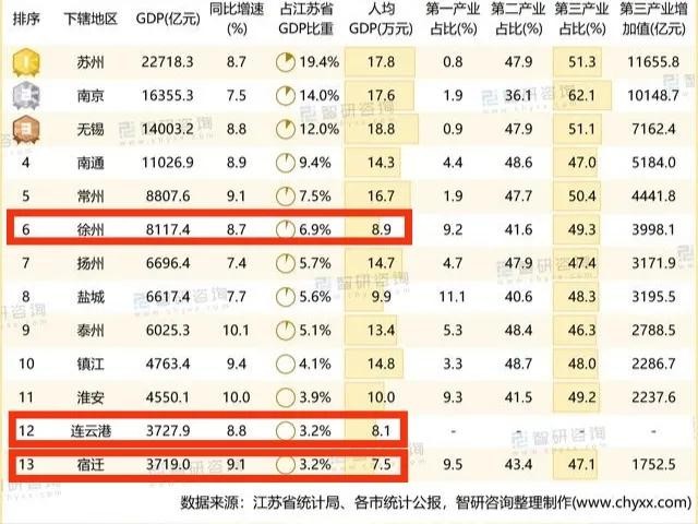 2.从2021年江苏省各市经济发展情况尤其是人均GDP来说,徐州连云港和宿迁市其实是排在全省13市倒数三位,该三市的经济发展是相对落后的。加上江苏省现有版图南北跨度过大,客观上造成南北融合不足,肯定是不利于北部地市的发展,因此将这三市合一成立新的直辖市对其区域发展是非常有利的,对新江苏的发展更不会造成大的伤害。