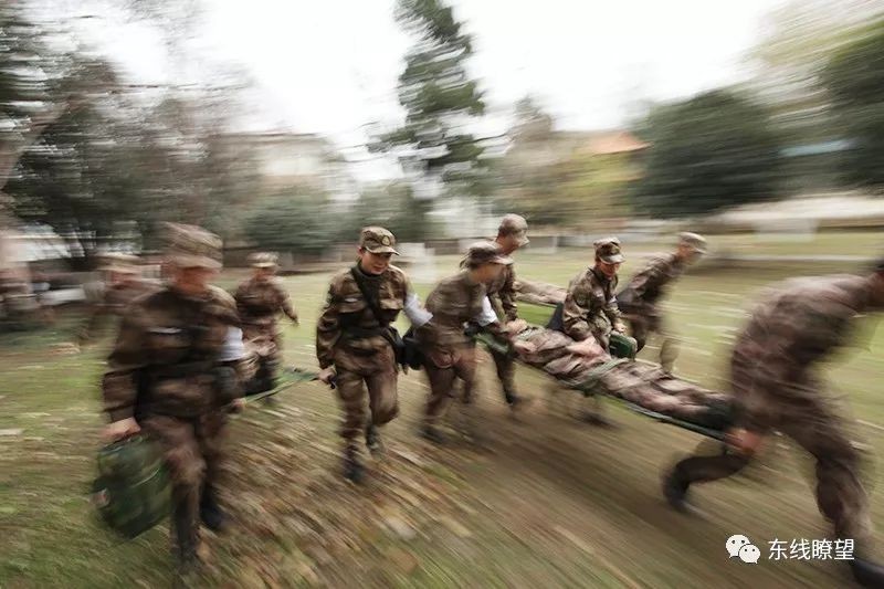 匍匐前进、穿越铁丝网、利用障碍物掩护伤员……近日,8名护士携带担架、急救箱前出搜救转移伤员,救治程序流畅、战术动作娴熟,圆满完成了上级下达的搜救转移任务。