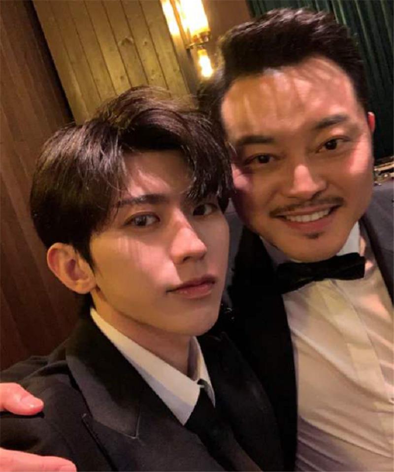 但是颜值还是在线的,和蔡徐坤合照的时候,一脸慈祥,