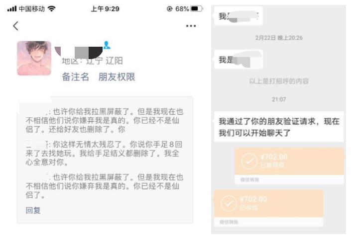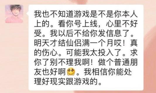 新哥得知仙侣提出解除关系后百般挽留,微信轰炸,甚至跟女玩家的其他好友诉苦,然而人家根本不带搭理。