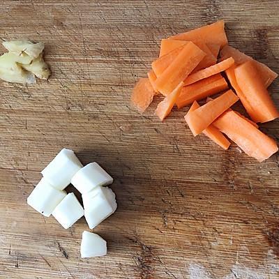 6、准备好搭配的食材,山药,胡萝卜,生姜片。