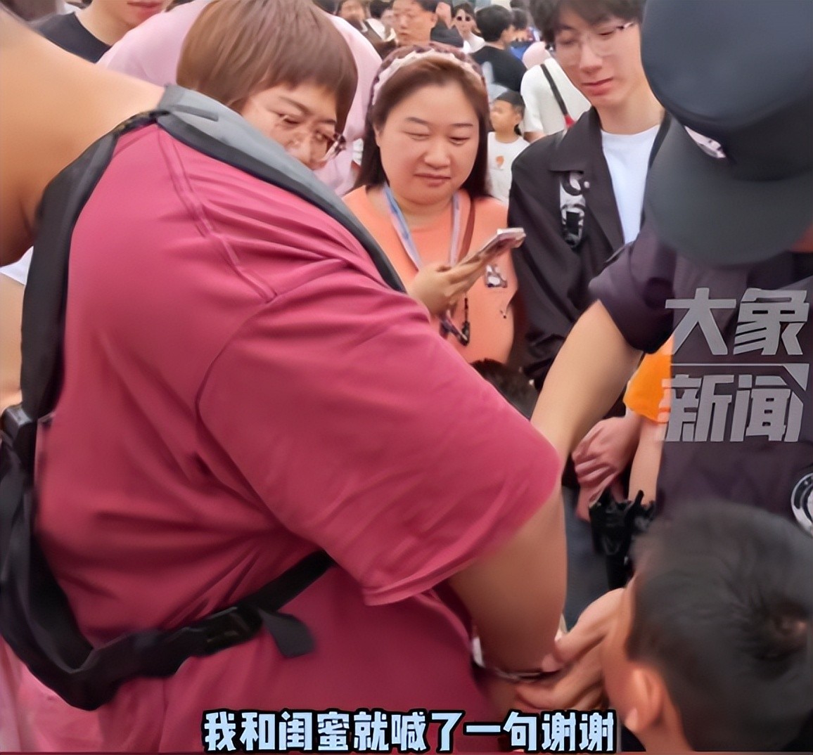 在体验戴手铐的环节中,当警察将手铐戴在她手腕上时,她竟然连声说出了一句简单而真挚的“谢谢”。