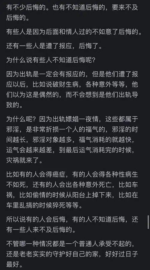女人出轨后到底后悔不后悔,看完网友的评论,令人共鸣。