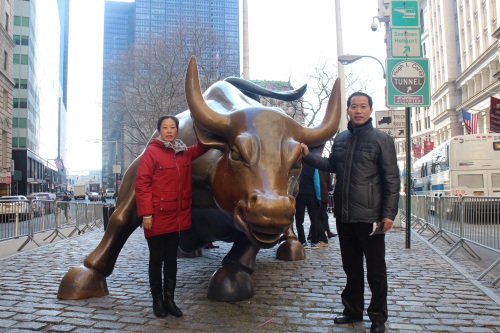 纽约的大铜牛,摸摸有好运