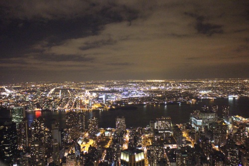 帝国大厦上看纽约夜景,中央是哈德逊河