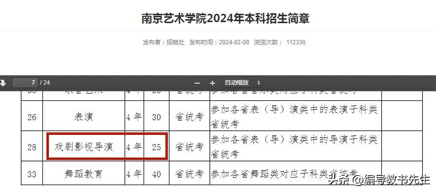2024年2月8日,南京艺术学院发布《南京艺术学院2024年本科招生简章》,戏剧影视导演专业按省级统考招生,招生计划25个,比2023年增加13个。