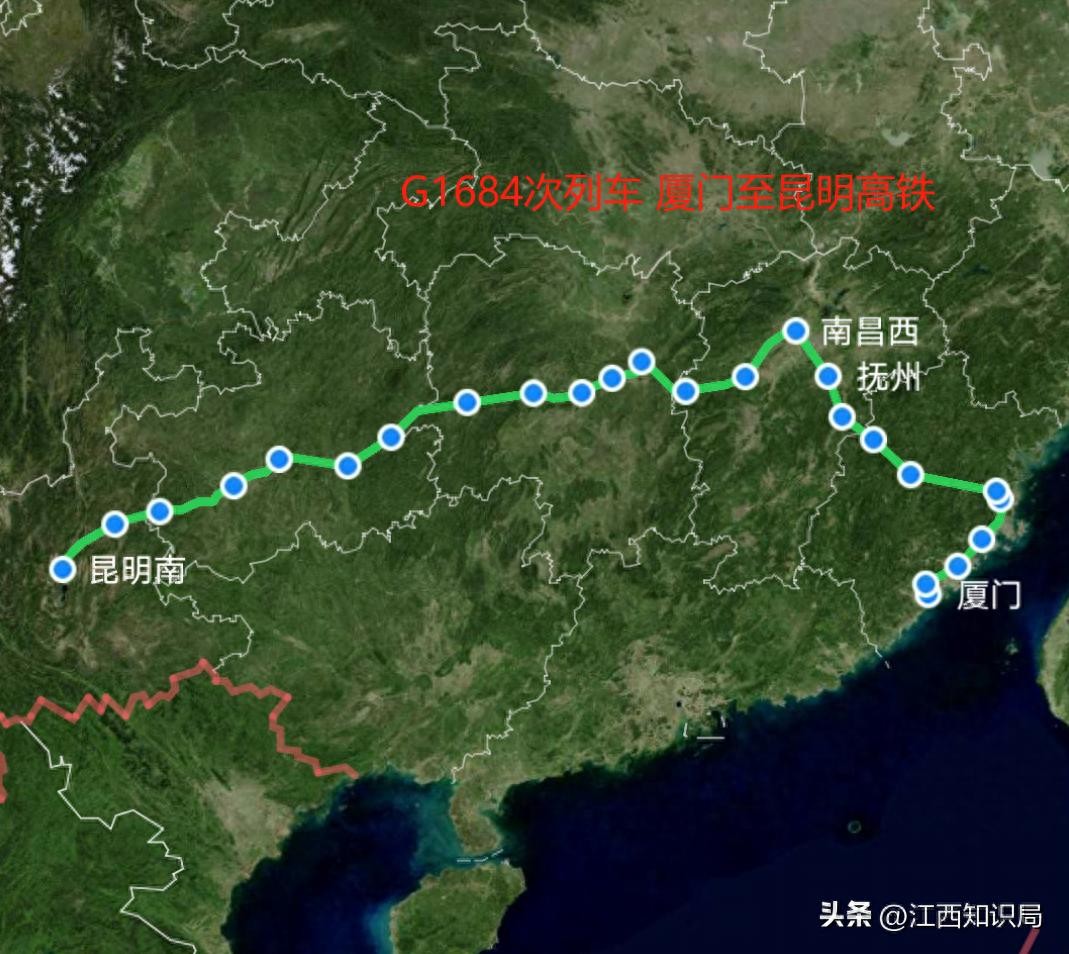 厦门至昆明高铁,途经福州、南昌,G1684次列车耗时约14小时