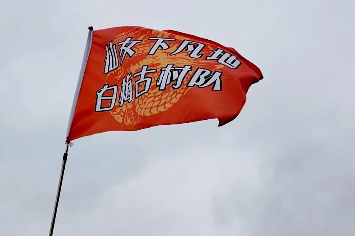 鲜艳夺目的白梅古村代表队队旗飘扬流坑