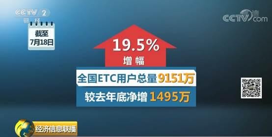 据了解,今年10月底高速公路ETC将具备全国联调联试条件,目前全国ETC发行顺利,用户规模增速明显加快。截至7月18日,全国ETC用户总量达到9151万,较去年底净增1495万,增幅19.5%,目前全国日均ETC发行量约42万,是去年日均发行量的7倍。