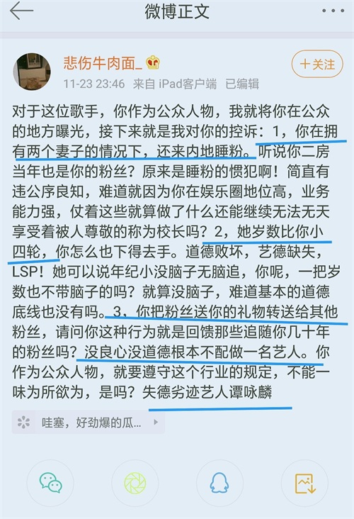 在他曝光以后,事件便被不断地发酵,这个平台的媒体纷纷曝光这些事情。#八卦手册##谭咏麟经纪公司声明##情感#