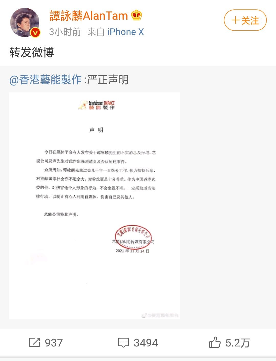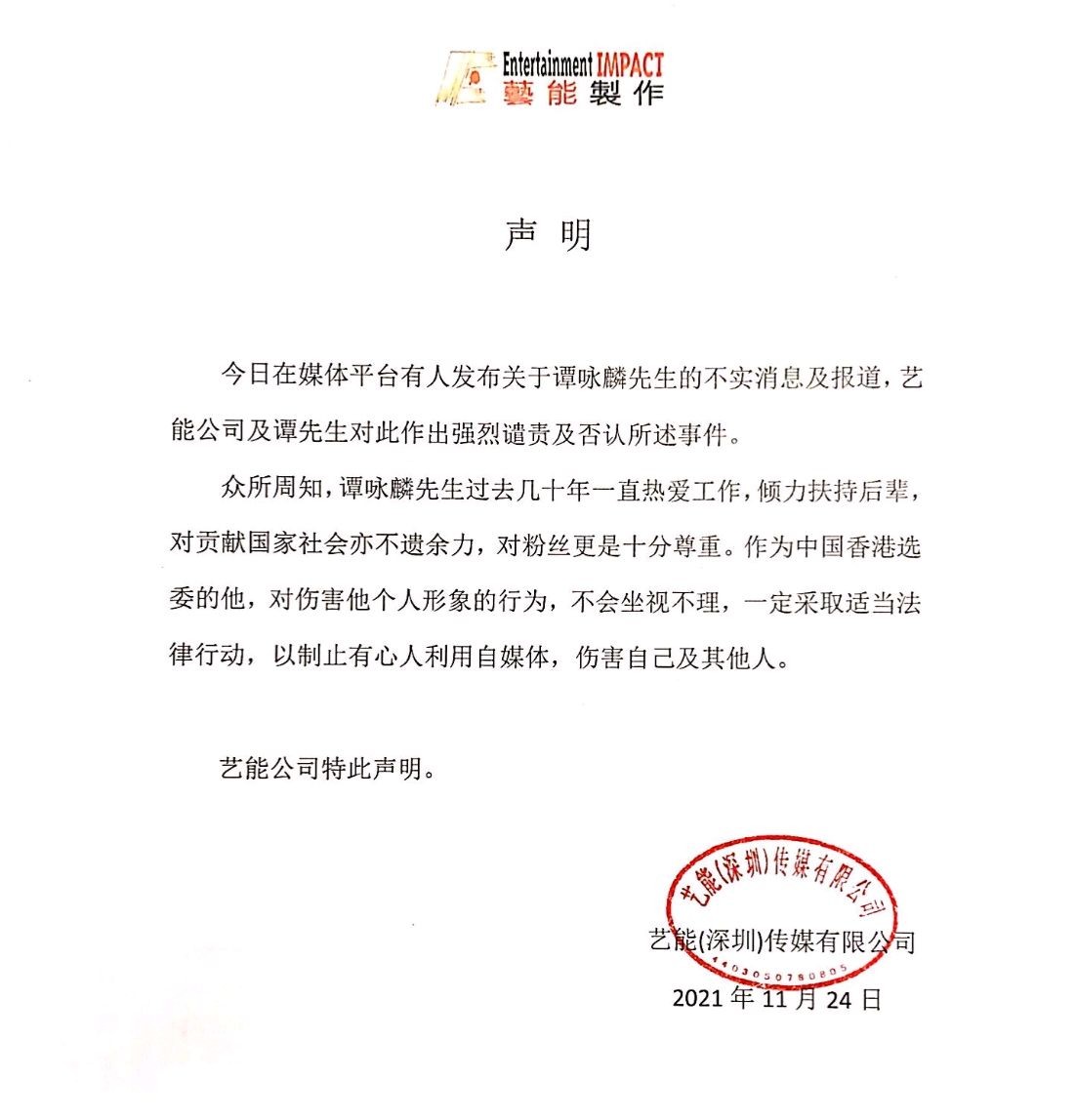 本以为这只是一个炒作而已,想到下午的时候谭咏麟方便晒出辟谣声明,声明中针对关于谭咏麟的不实报道,公司将会做出强烈谴责以及否认事件的存在。