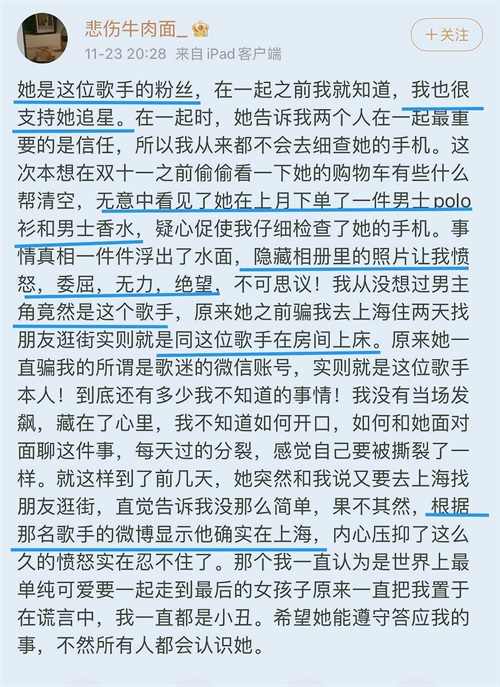 该网友在这一天连发了六条信息曝光谭某明星,他是因为女朋友的购物车才发现问题。