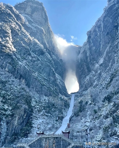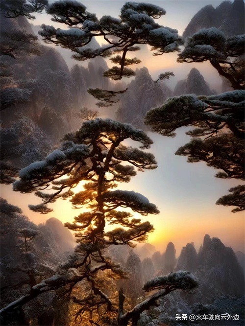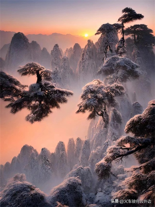冬季登顶,可见雪后的松林和梦幻般的日出。