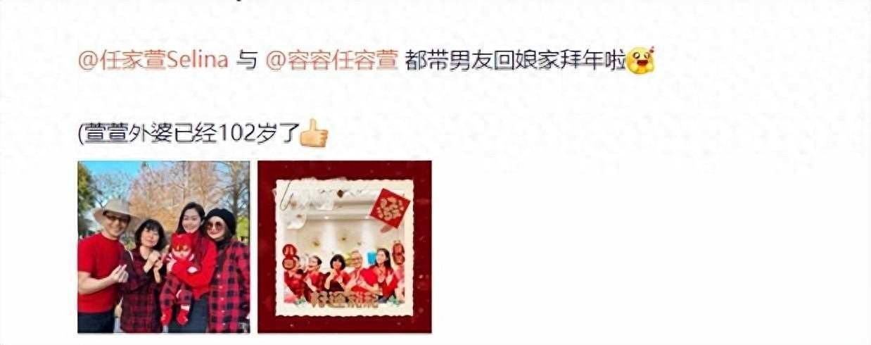 值得一提的是,这次家庭聚会中,任家萱的外婆也亮相了,年过百岁的她依然健康活泼,展现出了长寿的奇迹和家族的幸福传承。四世同堂的场面,不仅是一种幸福的象征,更是对传统家庭价值的传承和延续。