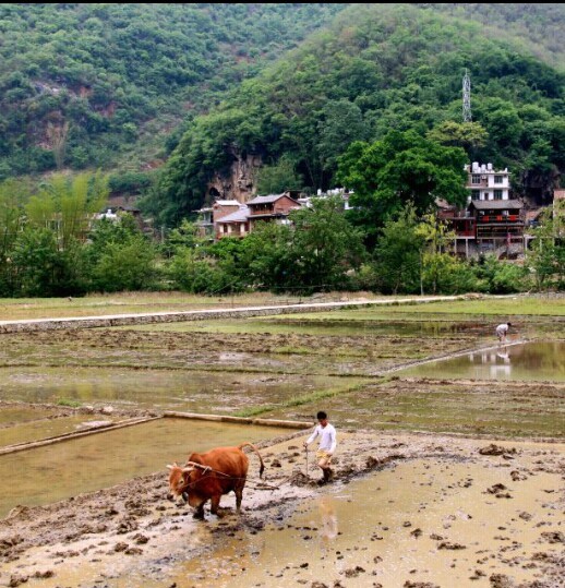过去没有机械作为动力,一般用牛去犁田,效率十分低下。