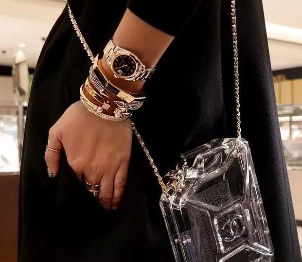 表带和手链的材质种类繁多,但是每一种材质的表带和手链都有搭配的方法。像金属的表带和精致的手链搭配,给女生灌注了不少中性风,搭配上个性的手镯,又能突显独特自我的风格。