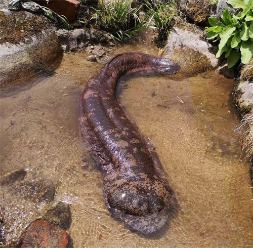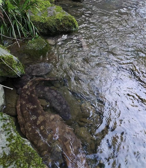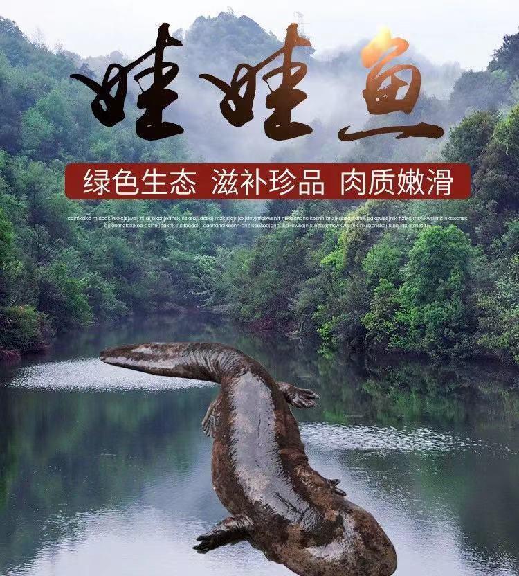 中国大鲵是两栖纲、隐鳃鲵科的一种两栖动物,生活在淡水中。是中国特产的一种珍贵野生动物,俗称“娃娃鱼”。但它却并非鱼类,而是体形最大的一种两栖动物,全长可达1米及以上,体重最重的可超百斤,娃娃鱼头部扁平、钝圆,口大,眼睛不发达,无眼睑。身体前部扁平,至尾部逐渐转为侧扁。体两侧有明显的肤褶,四肢短扁,指、趾前四后五,具微蹼。尾圆形,尾上下有鳍状物。