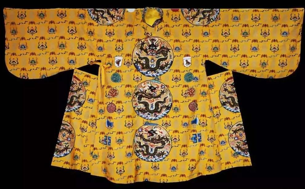 1958年,北京定陵万历皇帝棺内出土一件缂丝衮服,衮服上绣有十二章纹。据《尚书·益稷》记载,十二章纹中日、月、星辰——象征着光芒普照大地、山——象征人人敬仰、龙——取其应变之意、宗彝——象征忠孝、华虫——象征文丽、藻为洁净、火为光明、粉米为“养人”滋养、黼为决断、黻为明辨。