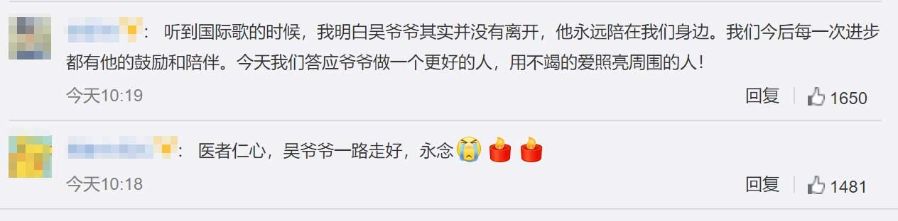 “医者仁心,吴爷爷一路走好”……