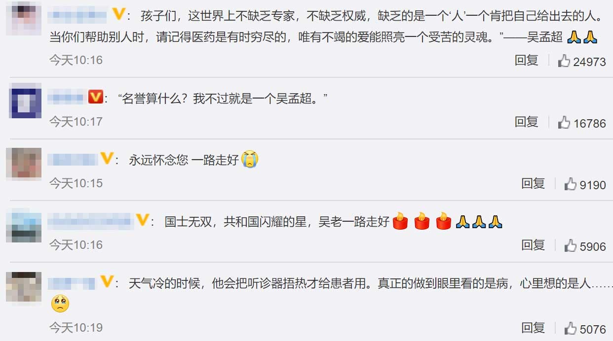 都是对吴孟超院士满满的不舍和敬意