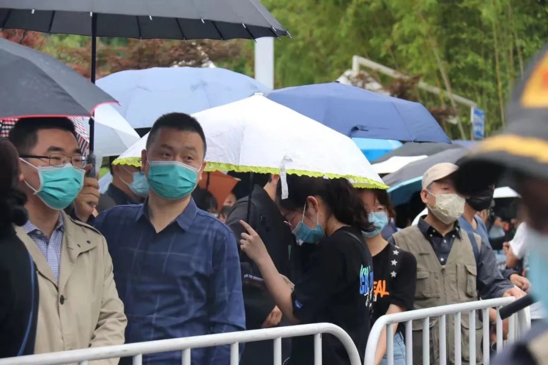 冒雨前来吊唁的人