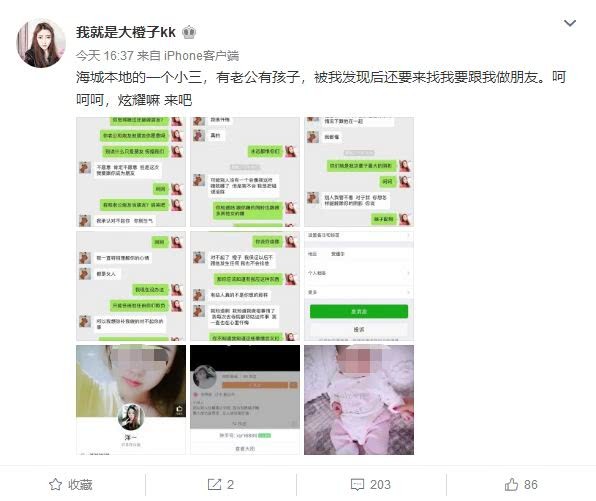 晚上大橙子微博再次爆料小白龙出轨的另外一个对象。