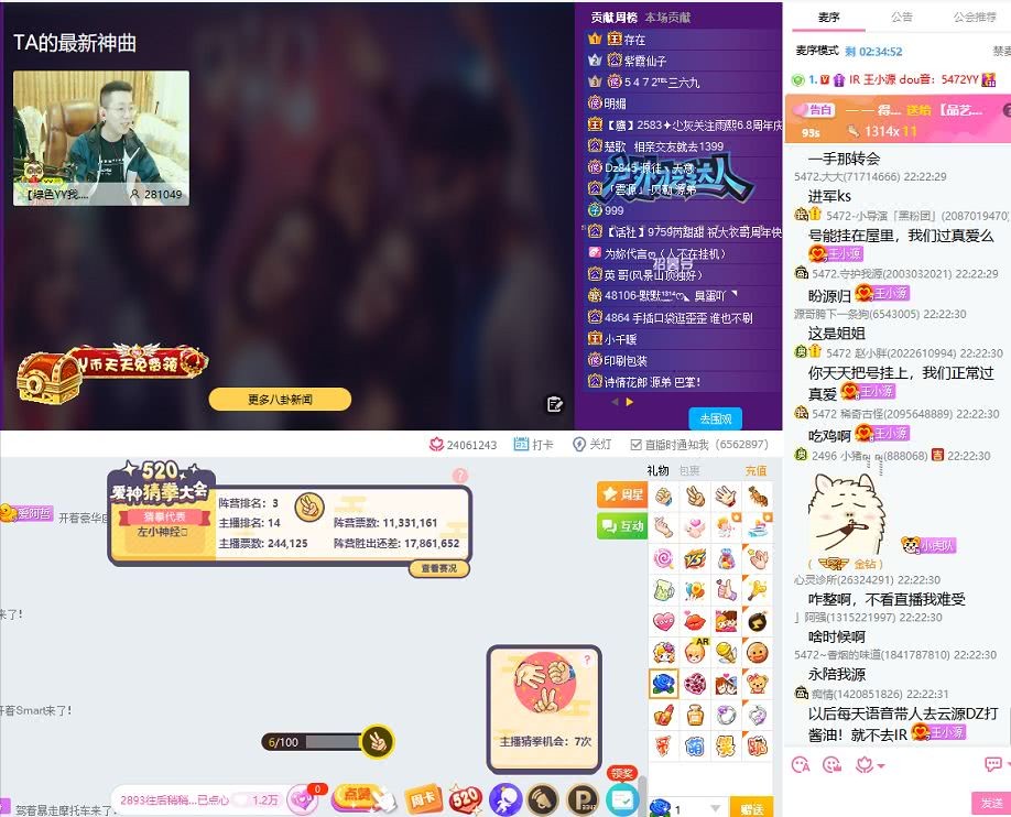 晚上王小源正常开播,不过好景不长,10点多被IR公会冻结,公屏都在说IR凉了,王小源说冻了就冻结了,我P都不放,冻了就不玩了,高管你拿我当条狗吧!还有一年到期了,不行咱们就2019年再见得了。