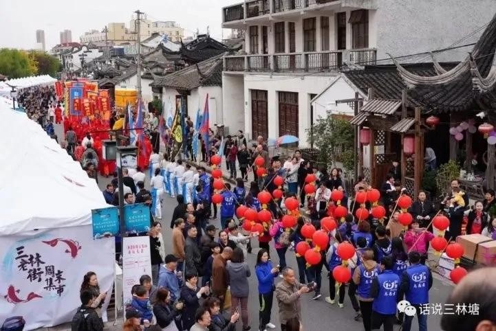 上世纪八十年代底,三林塘在现灵岩南路上恢复了以“城乡物资交流会”为名的庙会,虽然较以前相比缺少了许多文化内涵,但鳞次栉比的摊位,摩肩接踵的人群和鼎沸的人声,不乏旧时的热闹,只是当时的体制问题,最终以不合时宜而结束。