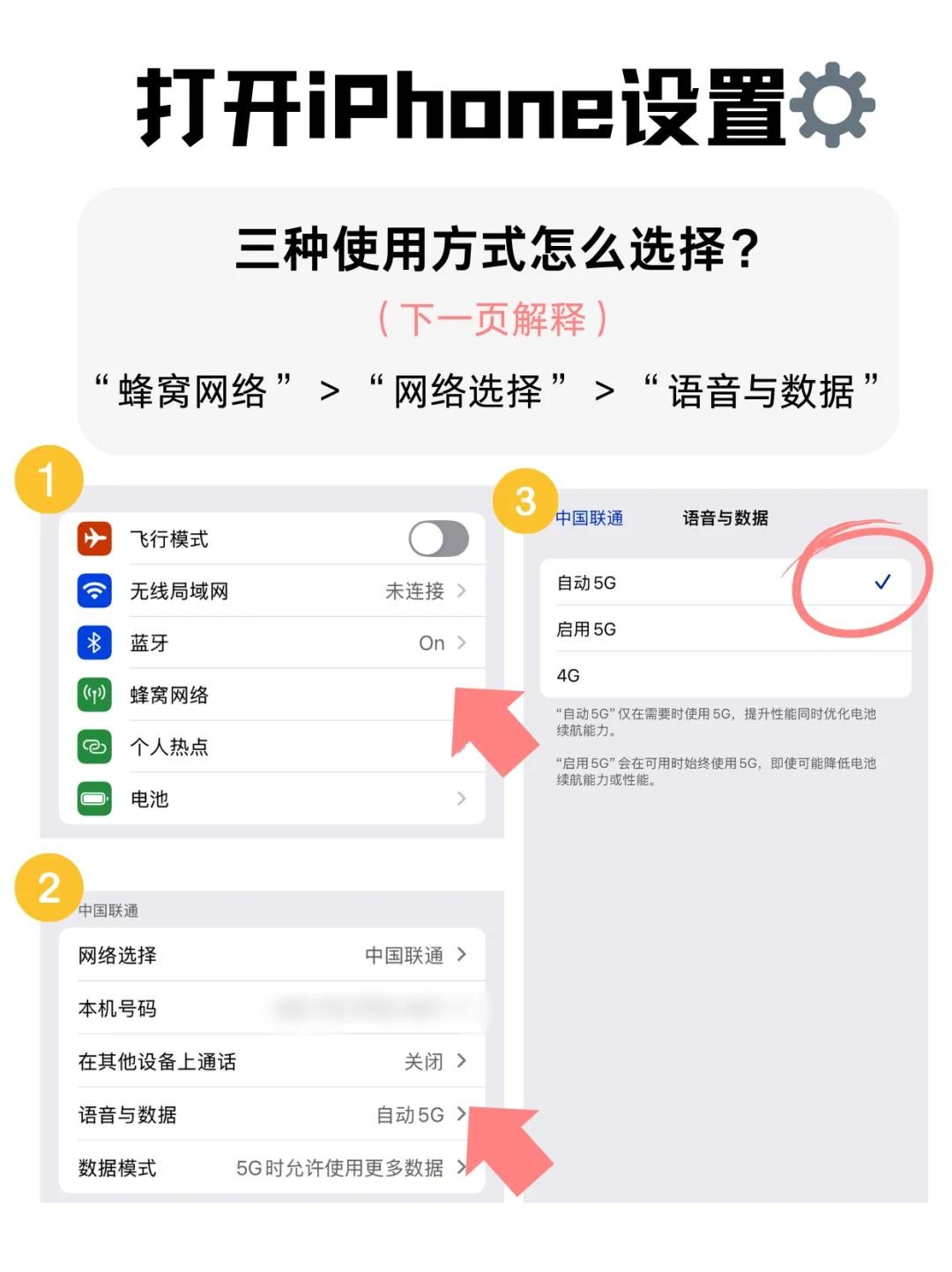 2⃣“蜂窝网络” > “网络选择” > “语音与数据”>选择你使用数据的模式!