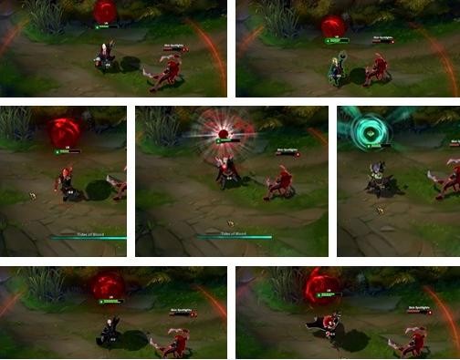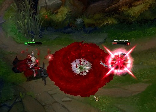 E技能已经重做变成一个猩红血球,每款皮肤的效果略有不同,区别最大的是鲜血领主和摄魂男爵。