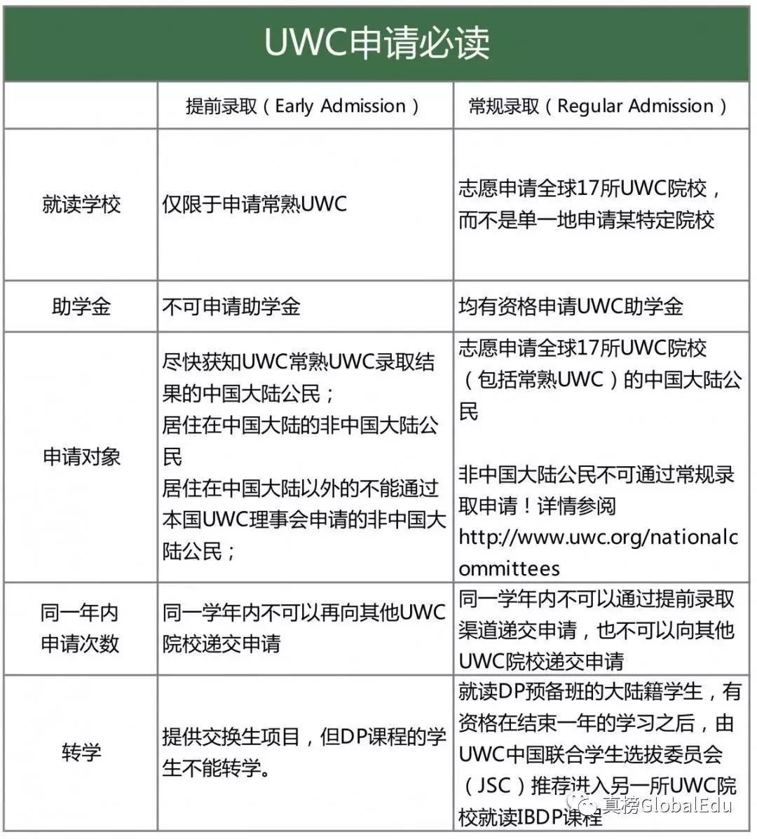 UWC有两种申请方式,一种是早申(GSP:学生可以指定校区,全部自费),另一种是常规申请(UWC各国委员会为学生指定17所分校中的一所,学生可申请奖学金)。
