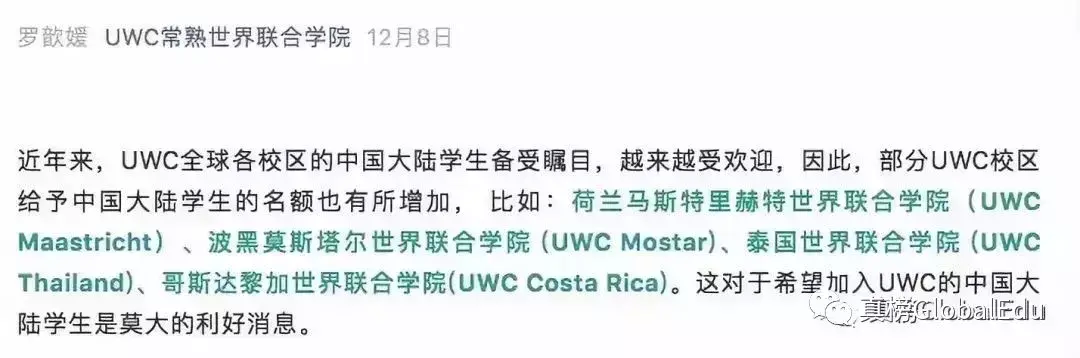 另一个利好消息是,UWC官微已发:部分UWC校区增加选录申请IBDP中国大陆籍学生名额!