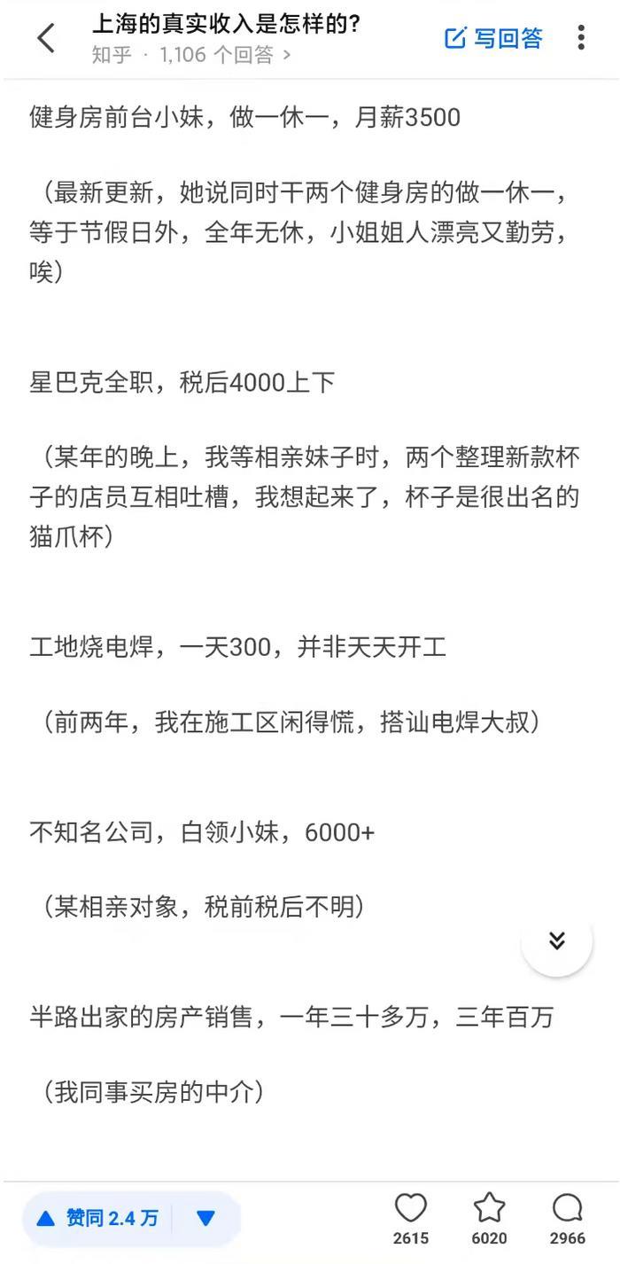 一位知乎用户曾根据身边人的真实经历,整理出了一张“上海各行各业真实税前收入表”: