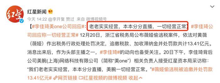“是我不专业,没有做好税务工作,害了薇娅。”
