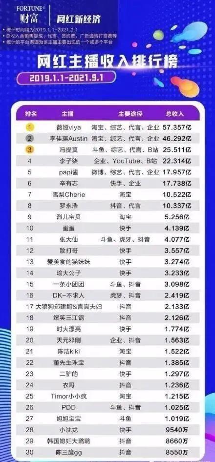 远超第二名李佳琪近10亿,是第四名李子柒的两倍还多。