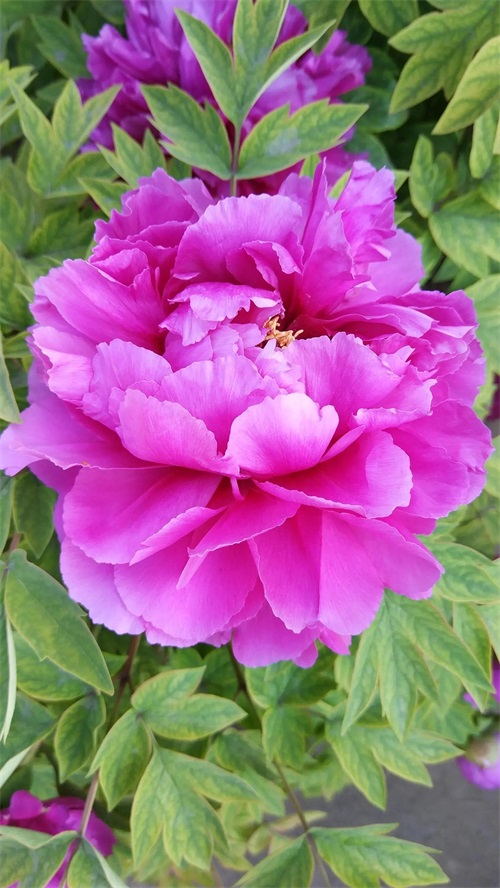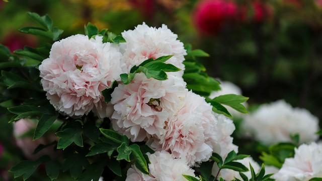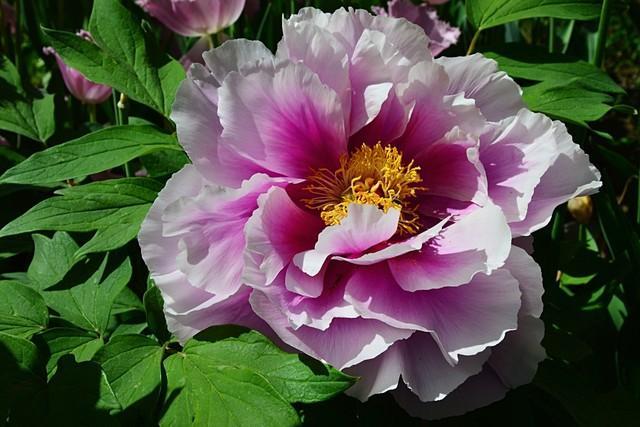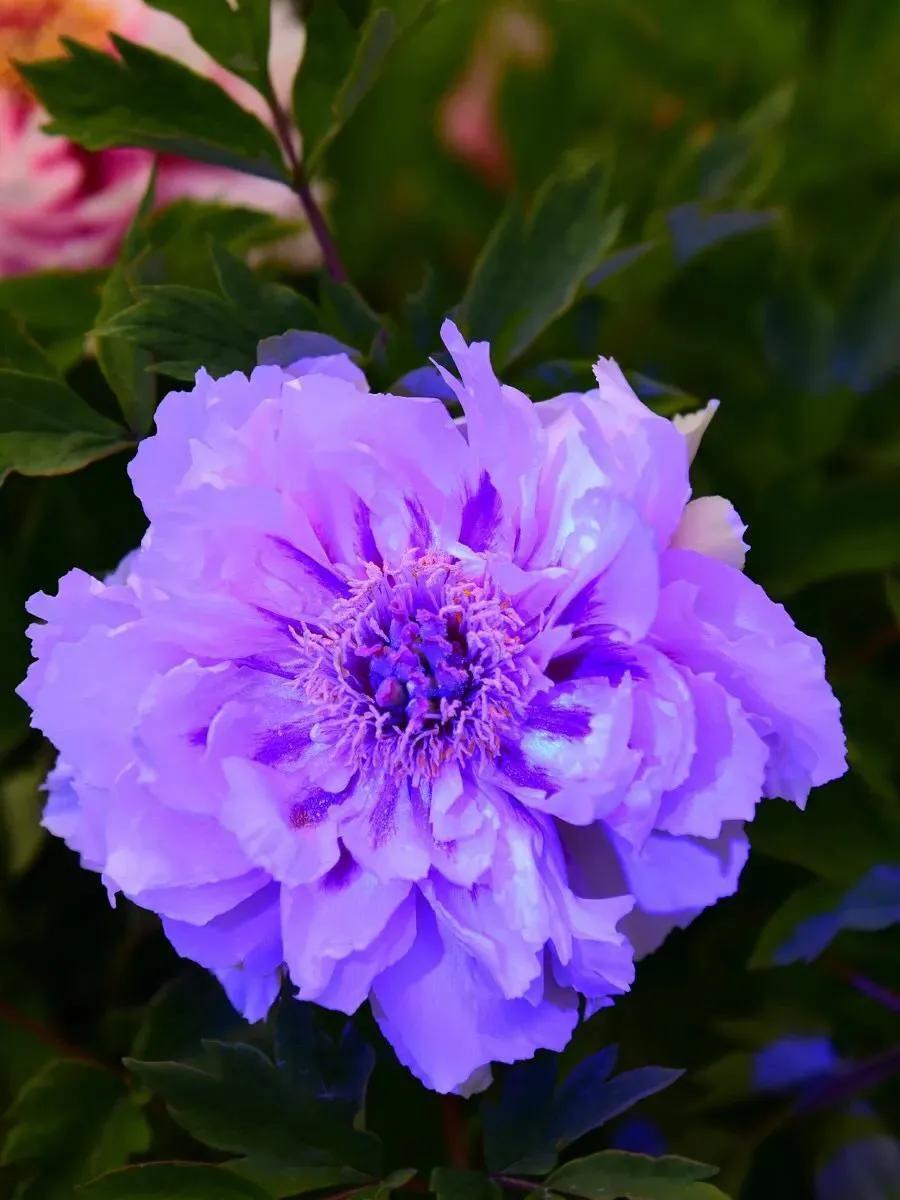 紫红花瓣与纯白花瓣的复色牡丹花非常稀少。