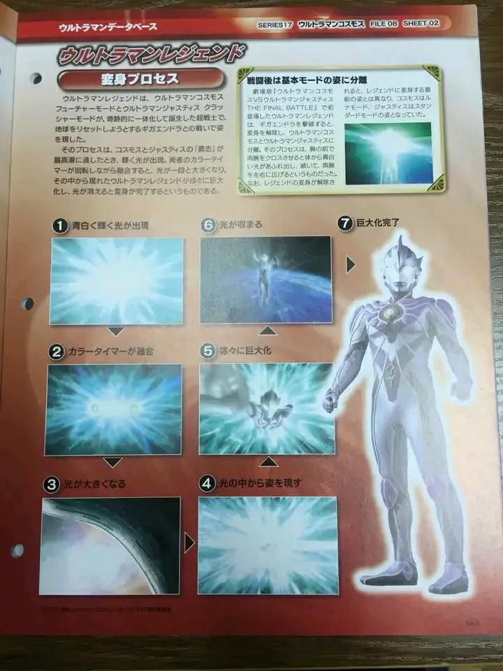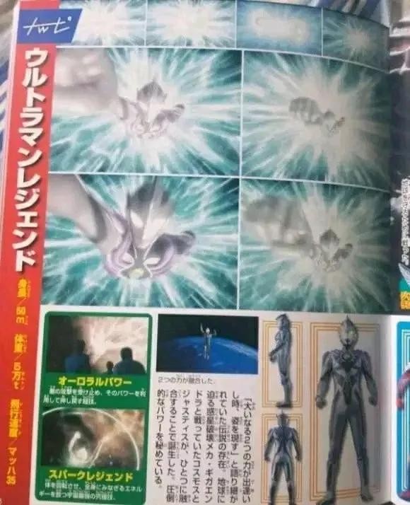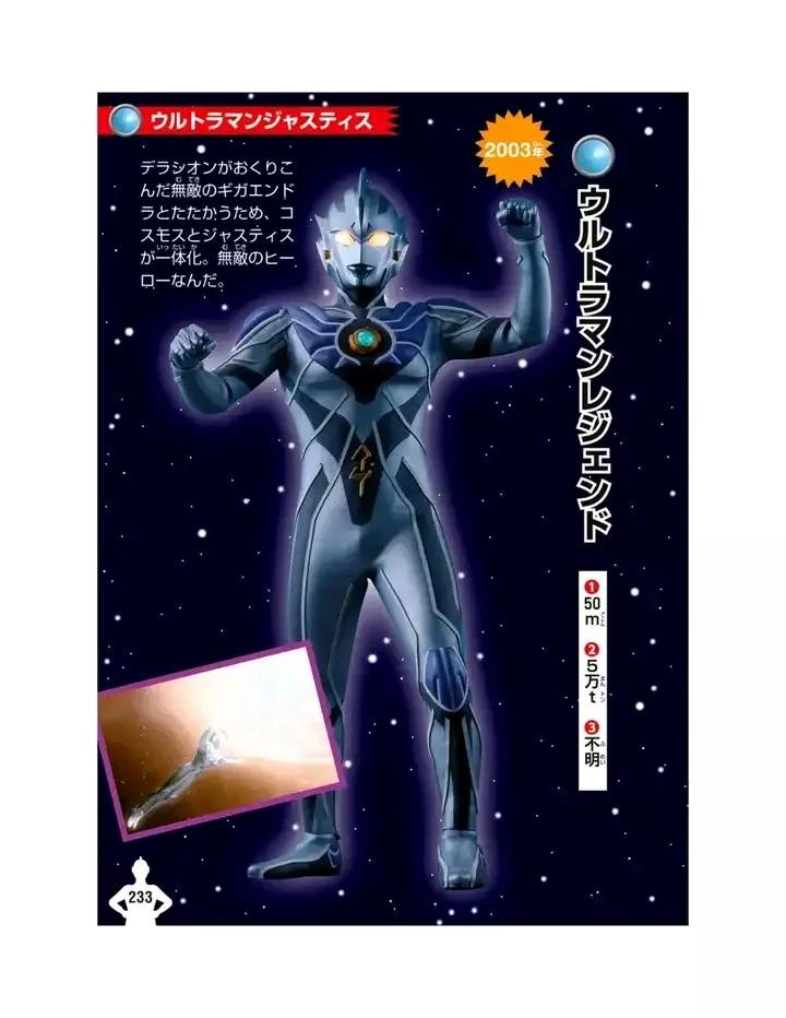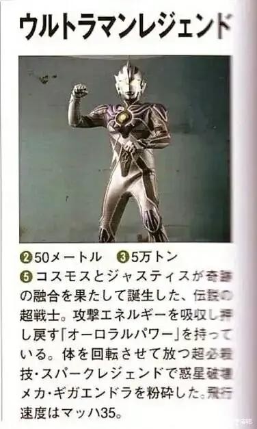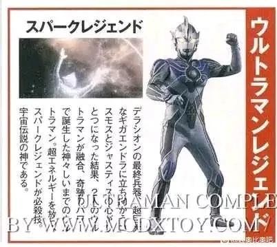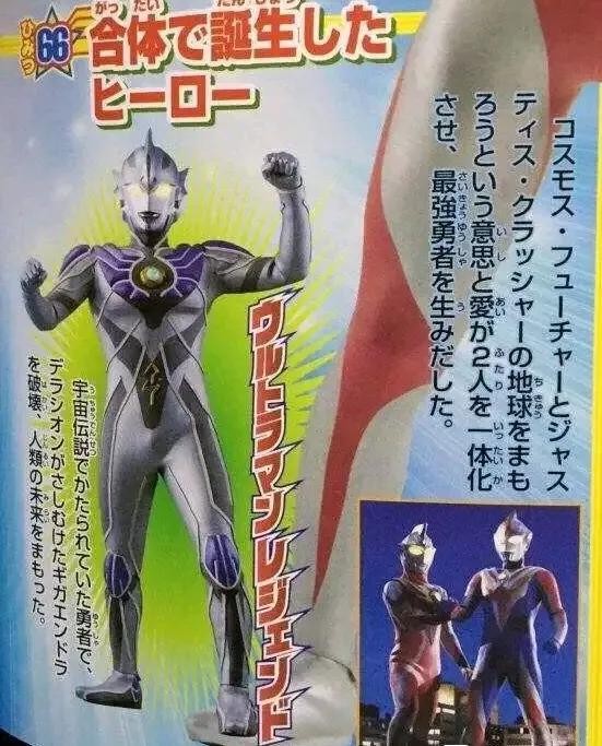 当高斯和杰斯提斯实现奇迹的融合时,诞生的传说中的超战士。拥有将攻击能量吸收后加以回击的“极光之力”。转动身体,释放出超必杀技火花传说,粉碎了行星破坏机械千兆恩多拉。飞行速度是35马赫。