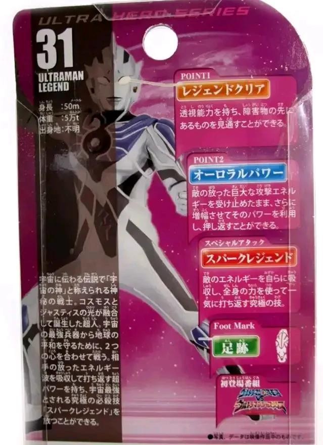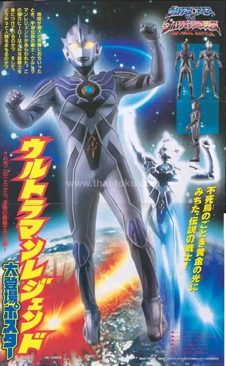 登场于"宇宙中两大伟大的力量相遇之时,在其光芒中会展露其真正的样子"这个自然宇宙人加西星人的古老传说中的战士。正如其"传说"的称号,拥有为保护所有的生命的强壮又无敌的力量。用极光之力承受再次释放的清除球并将其推回后,释放放出全身的能量的宇宙最强的技能火花传说,破坏了基伽恩多拉,保护了地球。