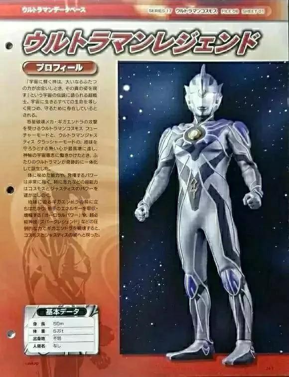 高斯和杰斯提斯一体化的姿态。在宇宙中传诵的传说中被称为“宇宙之神”的存在。2003年8月,初次登场于第3部剧场版《高斯奥特曼VS杰斯提斯奥特曼 最终决战》