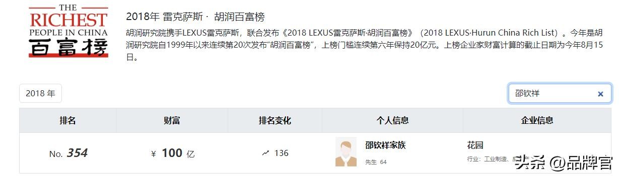 早在2018年,邵钦祥家族财富就超过100亿元了!