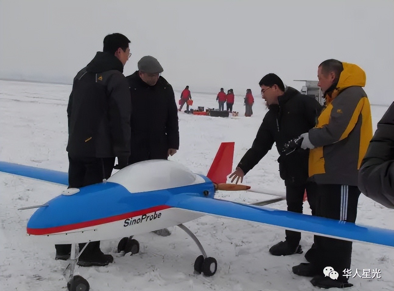 黄大年(左二)和团队成员在极寒天气下进行无人机试飞
