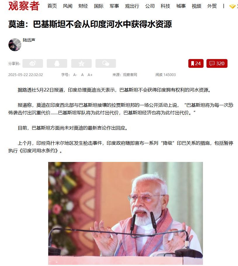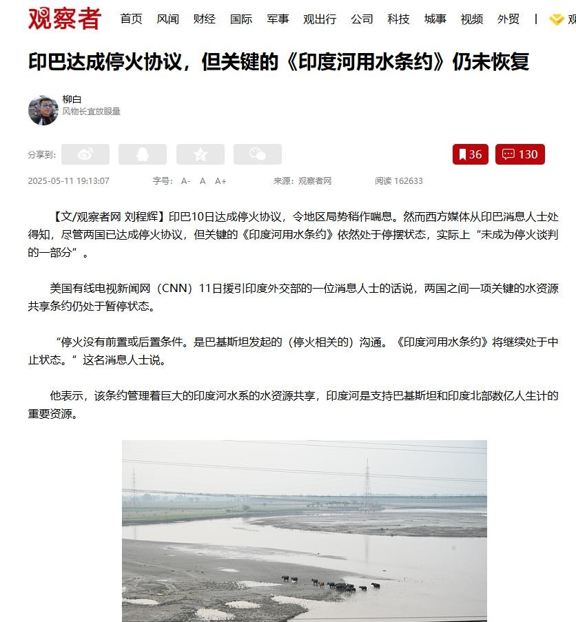 有意思的是,印度自己的智库也站出来辟谣了,5月8日,印度智库"中国与亚洲研究组织"发布科普文章,明确指出:中国想要大规模截流印度河水,难如登天!