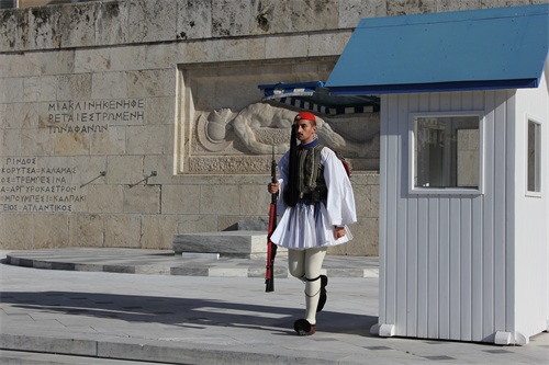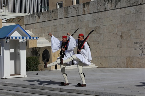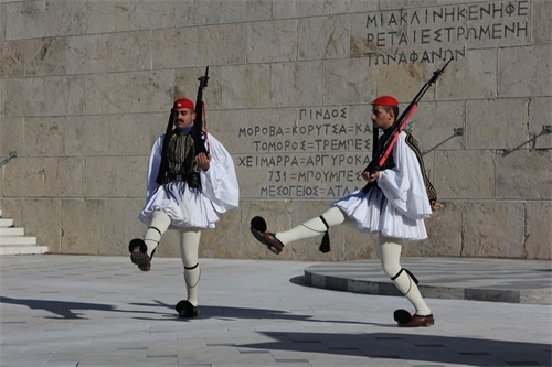 卫兵们身着爱奥尼亚传统服饰,卫兵帅气的颜值和夸张的走路姿态是最大看点