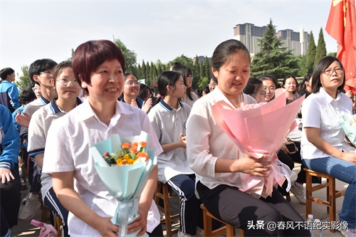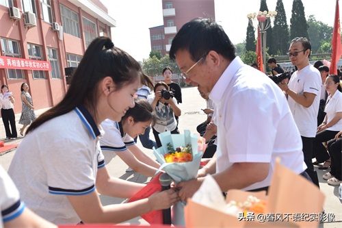 毕业生代表向各位领导和辛勤的老师们献歌、献词、献花,钢琴伴奏《凤凰花开的路口》《一路生花》2首温馨、励志歌曲,充满了坚韧与自我超越的力量,让同学们感受到旺盛的生命力和无畏的精神力量,表达了同学们迎接日后一切挑战的决心。一曲手风琴伴奏《送别》深深表达了高三学子与老师们依依惜别的深情。一束束鲜花包含无限感激之情敬献给可敬可亲的恩师们。