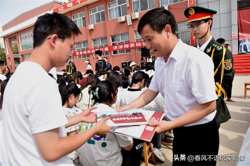在毕业典礼上,关工委主任关英才给在场的全体毕业生送上了语重心长的励志嘱托,一是惜别母校回眸望。别后常来看看你们的校长,你们的老师,你们的母校。二是金榜题名望星空。他告诉毕业生,读书不是为了应对考试,而是要成为更好的自己。不能忘记每一个度过的夜晚,每一道作过的题目都为你的今天铺出了一条宽广的道路,继续努力才是引领你前往梦寐以求的远方加油站。今后应发愤识遍天下事,立志读尽人间书,成为四个现代化建设的高端人才。三是考场失意不放弃。如果你这次考试成绩不理想,要坚信,人生从来没有白走的路,想要的总会在不经意间出现,只要怀揣希望去努力,美好的理想就能实现。关主任用充满激情的话语,鼓励高三毕业生们珍惜时光,端正心态,勇敢追求梦想,不断挑战自我,实现人生价值。