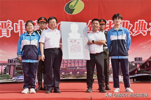 典礼仪式结束后,党总支书记、校长张学锋与副校长王军、姬正刚等共同为著名科学家钱学森石雕像揭幕。