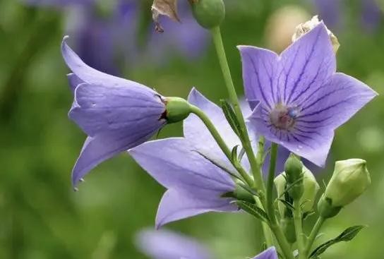 别名包袱花、铃铛花、僧帽花,是多年生草本植物,花期7~9月。叶全部轮生,部分轮生至全部互生,无柄或有极短的柄,叶片卵形,卵状椭圆形至披针形,花暗蓝色或暗紫白色,可作观赏花卉。花单朵顶生,或数朵集成假总状花序。花萼钟状五裂片,花冠大,长1.5~4.0厘米,蓝色、紫色或白色。